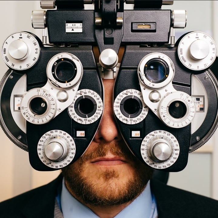 1. 포롭터(Phoropter)라는 장비를 사용하여 다양한 렌즈를 환자의 눈 앞에 놓습니다.