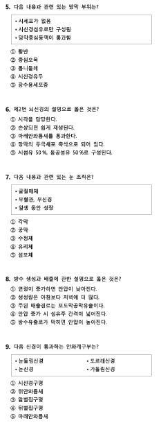 7. 다음 내용과 관련 있는 눈 조직은?