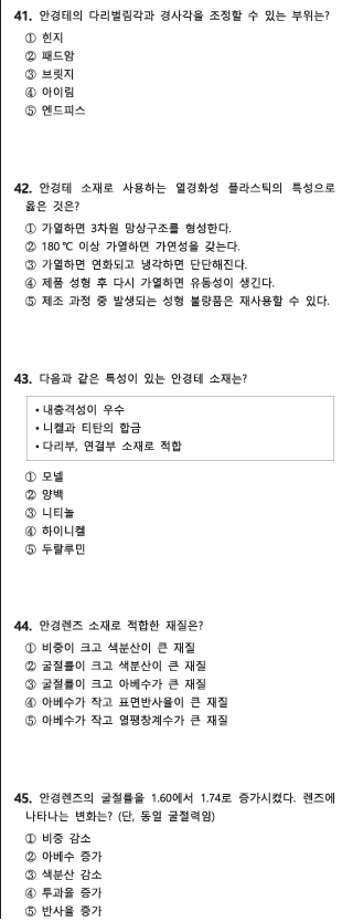 43. 다음과 같은 특성이 있는 안경테 소재는?