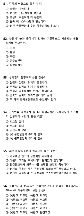 52. 양안시기능과 동적시야 검사의 기준점으로 사용되는 안광학계의 주요점은?