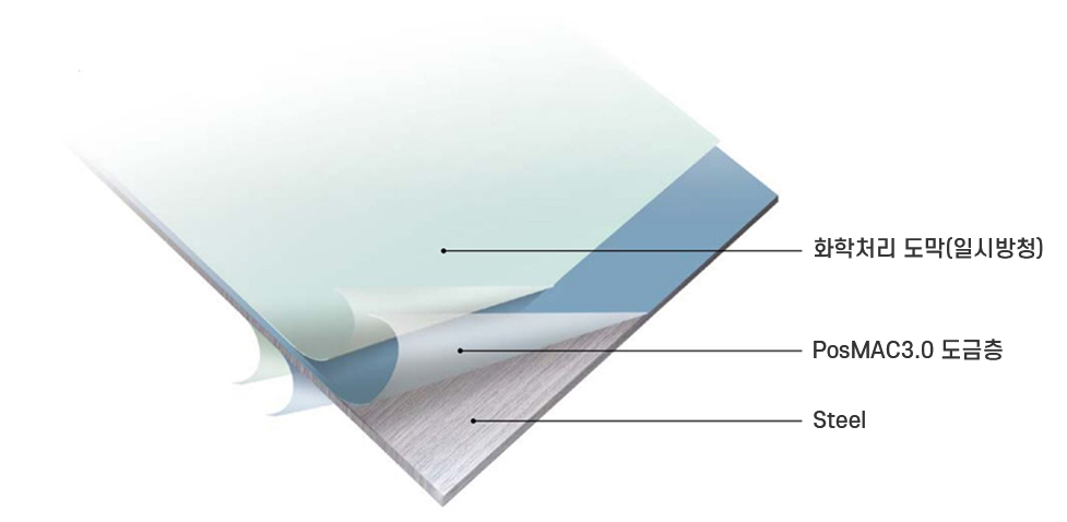 PosMAC은 "POSCO Magnesium Aluminium alloy Coating Product"의 약자로, 포스코에서 자체 개발한 고내식 합금도금강판으로 포스코의 독자적인 기술력이 집약된 고품질 제품입니다.